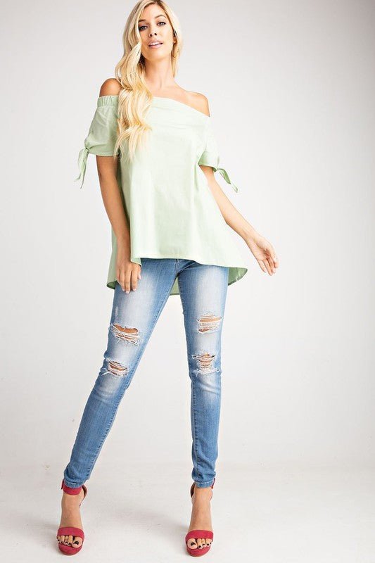 The Aqua Mint Short Sleeve Top with Relaxed Fit and Puff Sleeves