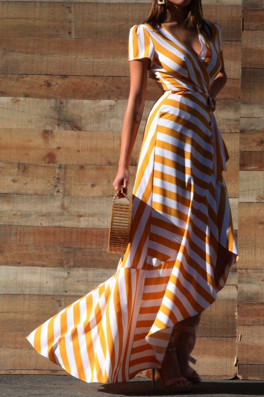 The Stephanie Ruffled Woven Wrap Maxi Dress